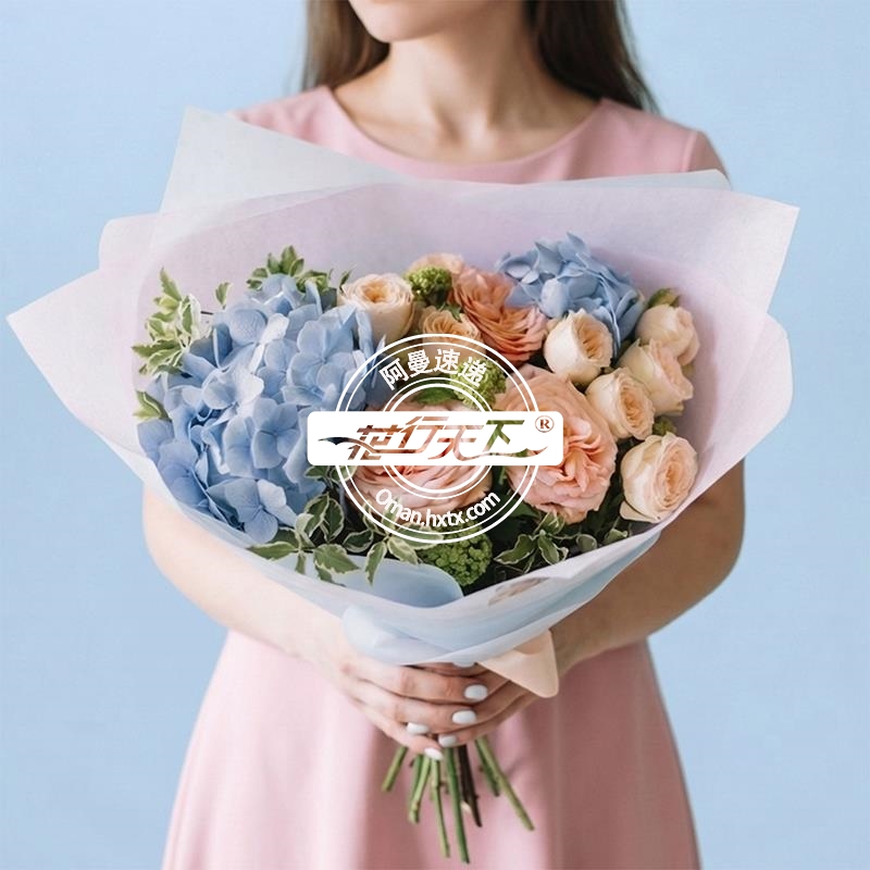 描述: 绣球花,洋桔梗,玫瑰组成、精美包装。
