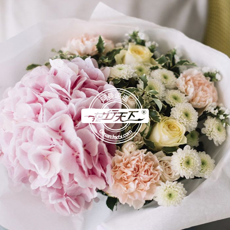 绣球花、康乃馨、菊花、玫瑰组成、精美包装.